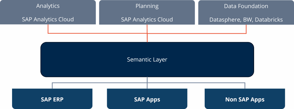 Datasphere übernimmt die Rolle der zentralen semantischen Integrationsschicht. Hier werden Daten aus S/4HANA, BW und Non-SAP-Quellen harmonisiert. Fachliche Logik wird in dieser Schicht cloud-fähig gemacht, sodass Unternehmen flexible, konsistente Datenmodelle für Reporting und Analyse erhalten.